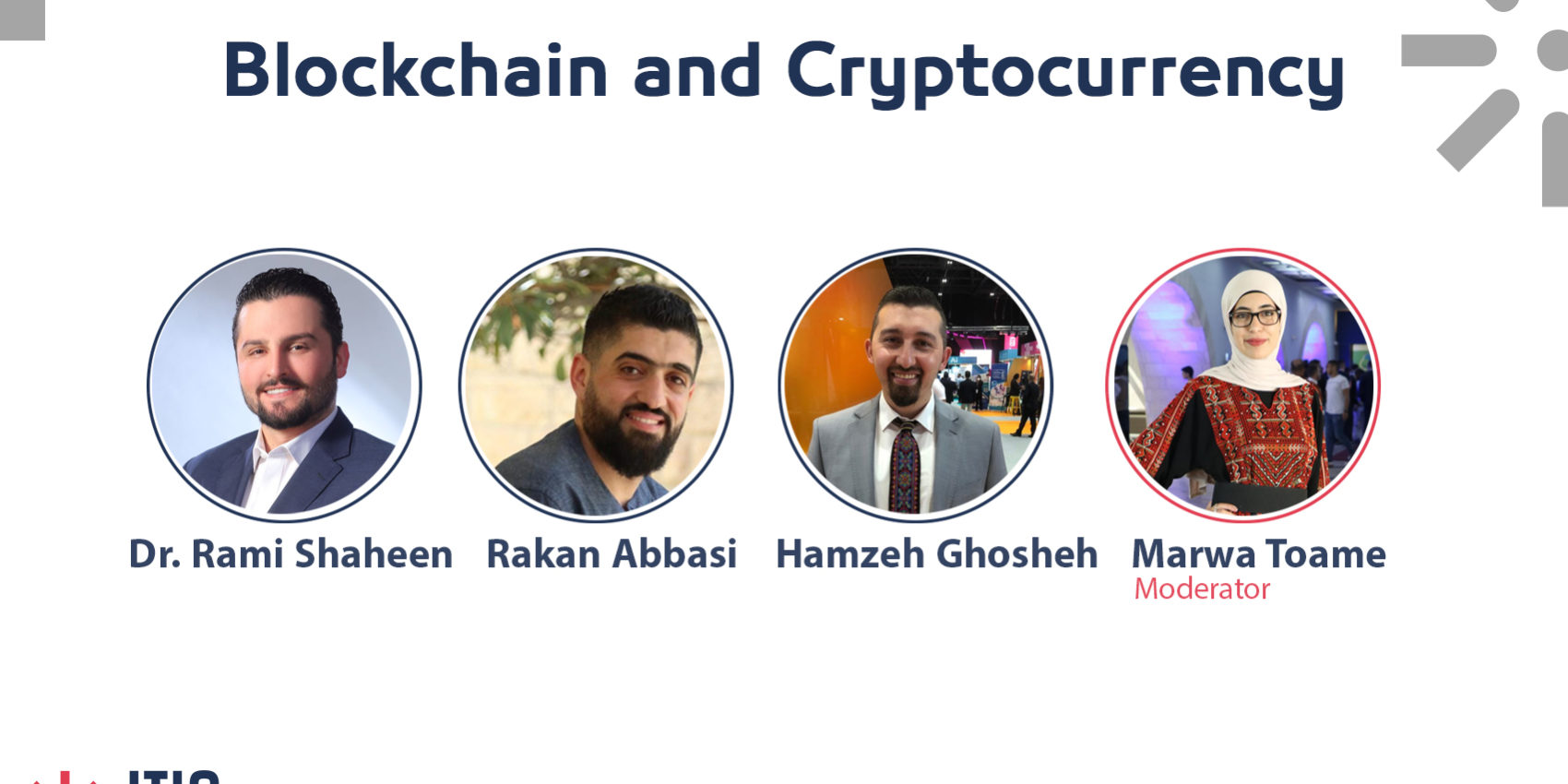 وقد ادارت الحوار سفيرة جامعة بيرزيت م. مروة طعمة ممثلةً عن سفراء مؤسسة آيتك بحضور الدكتور رامي شاهين من الأردن، والمهندسان من شركة ” Yalla NFT ” ركان عباسي وحمزة غوشة.